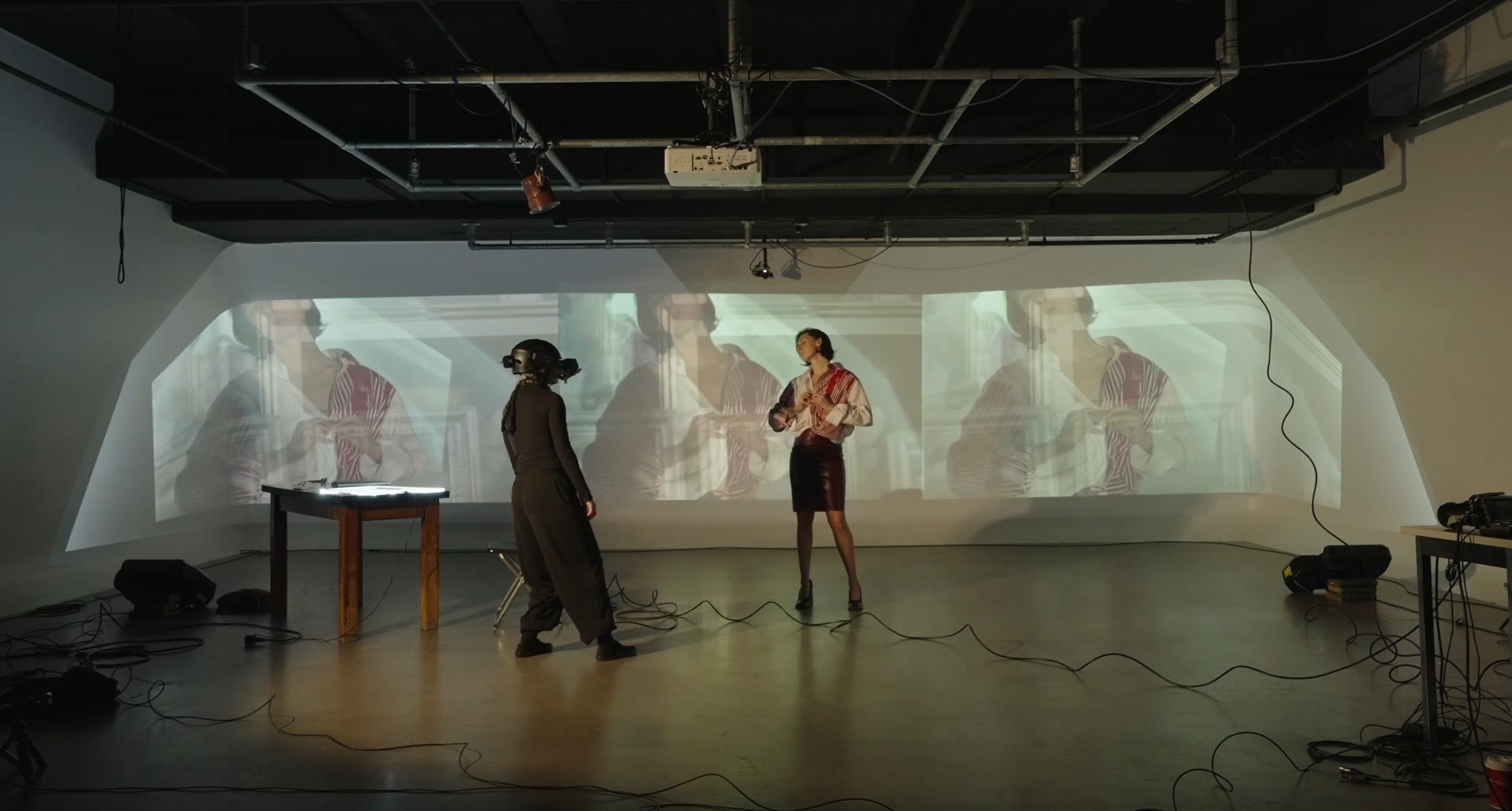 Projection, capteur de mouvement , enregistrement sonore, captation en direct , les limites de programmation est votre imaginaire.